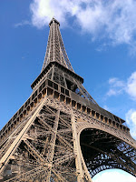 I just arrived in Paris. Instead of going to the hotel we take our city orientation tour and then to the Eiffel Tower. It’s a a bit colder than expected but it’s OK because it’s Paris. The sun is peaking out from time to time and provides a bit of warmth. It’s a bit windy standing below the Tower and when the sun is covered by the clouds it feels 10 degrees colder. Pashmina don’t fail me now. Actually on of our group members is wearing his wifes bright orange pashmina. He says, I don’t know what a pashmina is but it’s keeping me warm and right now I don’t care that it’s bright orange. Looking up at the Eiffel Tower it appears to move because of the effects of the clouds passing by. I’m trying to get the right angle to fit the tower into a picture. With the right tilt it works.