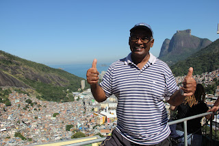 Later we met with Carlinhos, the owner of a house that he is extremely proud of and for good reason. He probably has one of the best spots in Rio. He operates his business called Terrace Tourist which is basically a tour of his home on his terrace. We are told by our guide that, here you build your own home. After three years if the government or no one else makes a claim it’s yours and all you do from this point is pay utilities and taxes. His place is three stories, I think. After climbing so many steps I lost count. On his terrace there is a view looking over the community below, a piece of Copacabana, the side of the mountain, the Tijuca Forest and from his kitchen window a view of Christ the Redeemer. He’s bursting with pride as he shows pictures of celebrities who have visited his Terrace along with photos of his young self, his daughter and grandson. Thank you Carlinhos for your beaming smile and exuberant personality.